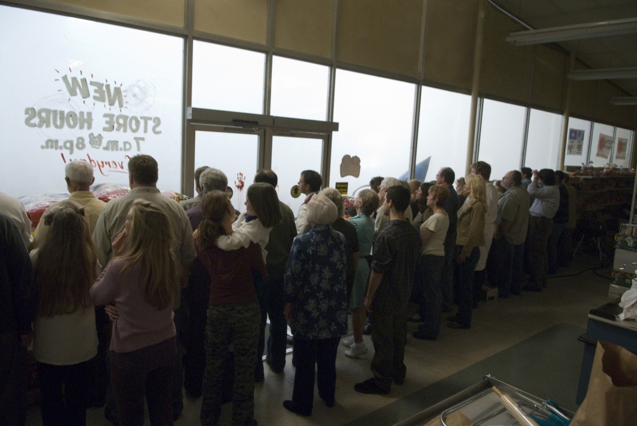 평화로운 호숫가 마을 롱레이크, 어느 날 강력한 비바람이 몰아친 뒤, 기이한 안개가 몰려온다. 데이빗은 태풍으로 쓰러진 집을 수리하기 위해 읍내 그의 어린 아들 빌리와 옆집 변호사 노튼과 함께 다운타운의 마트로 향한다. 하지만 데이빗은 무언가 이상한 느낌을 떨쳐버릴 수 없었다. 마켓에서 물건을 고르는 도중 동네 노인이 피를 흘리면서 “안개 속에 무언가가 있다!!” 뛰쳐 들어왔다. 마트 밖은 이미 아무것도 보이지 않는 정체 불명의 안개로 뒤덮혔고, 정체불명 거대한 괴생물체의 공격을 받는다. 마트 안에는 주민들과 데이빗, 그의 아들 빌리가 고립되었고, 지금 밖으로 나간다면 모두 죽는다는 미친 예언자가 그곳을 더욱 절망스럽게 만든다. 몇 시간 뒤 그들은 믿을 수 없는 괴물들의 등장으로 목숨의 위협을 받고, 살기 위해 살아 남기 위해 싸우기로 결심한다. 과연 그들 앞에 펼쳐진 것들은 인류의 재앙일까? 그곳에서 그들은 살아나갈 수 있을까?